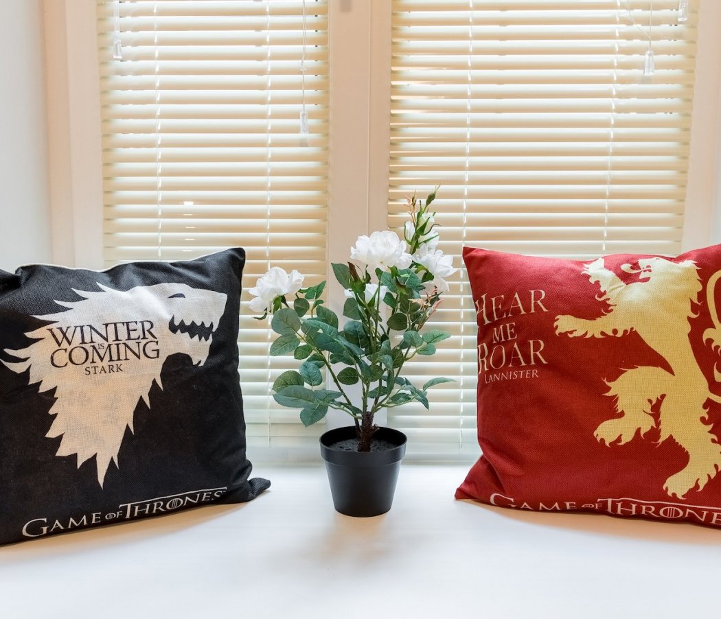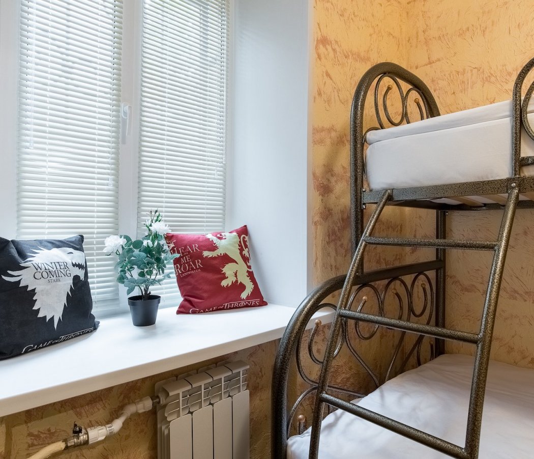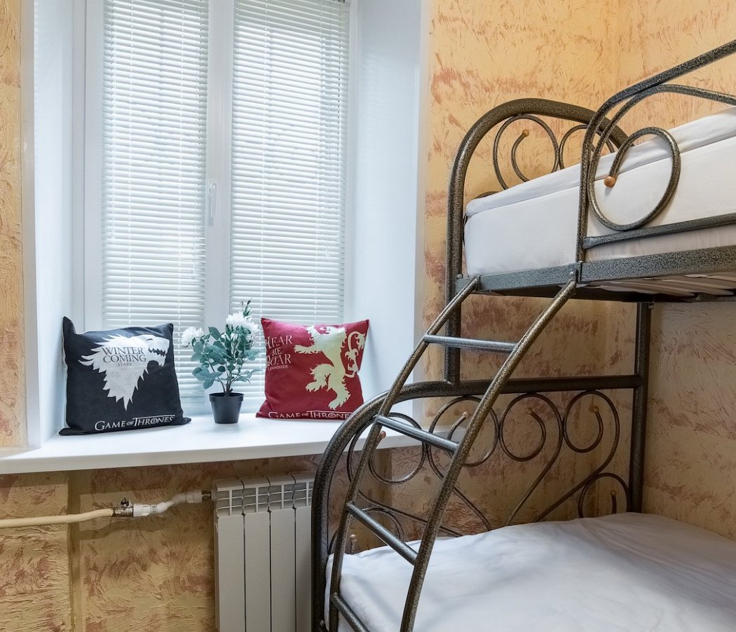 The interior of the hotel is decorated in bright colors, with elements of decor from the popular TV series "Games of Thrones" and loft style.