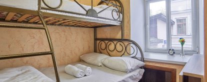 Each room comes with an orthopedic mattress, quality bed linen, towels, slippers, a working desk, chair, shelves for clothes and hangers.