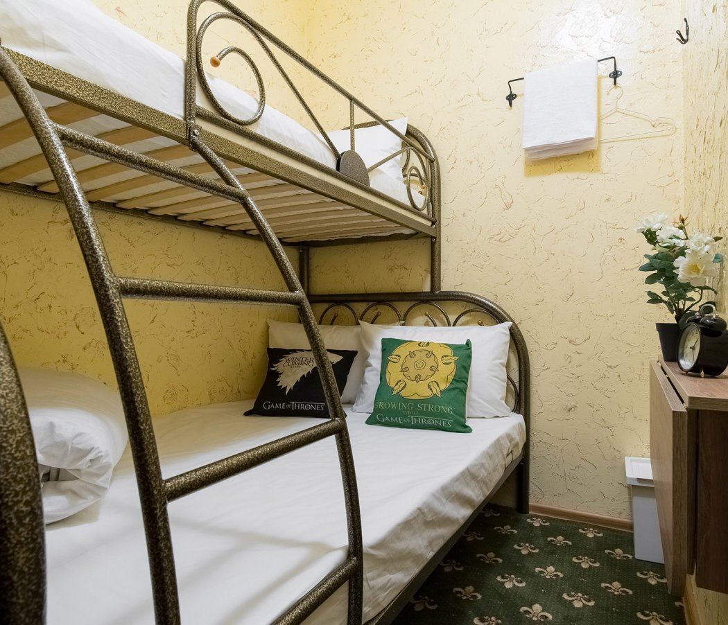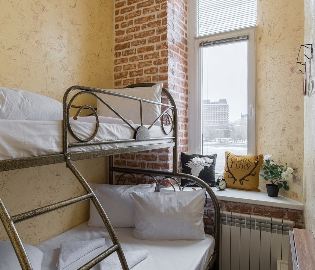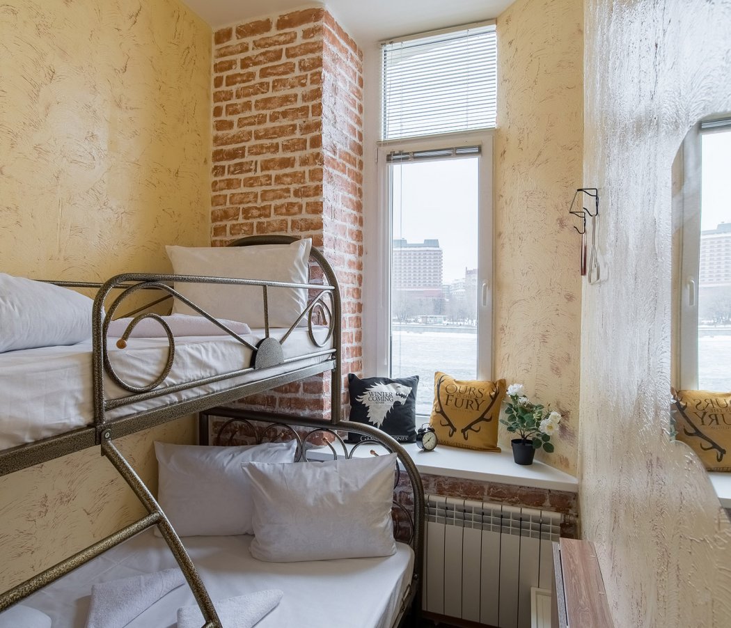 The hotel's interior is decorated in bright colors, with elements from the popular TV series "Game of Thrones" and loft style. Some rooms offer a view of the monument to Peter I and Prechistenskaya embankment.