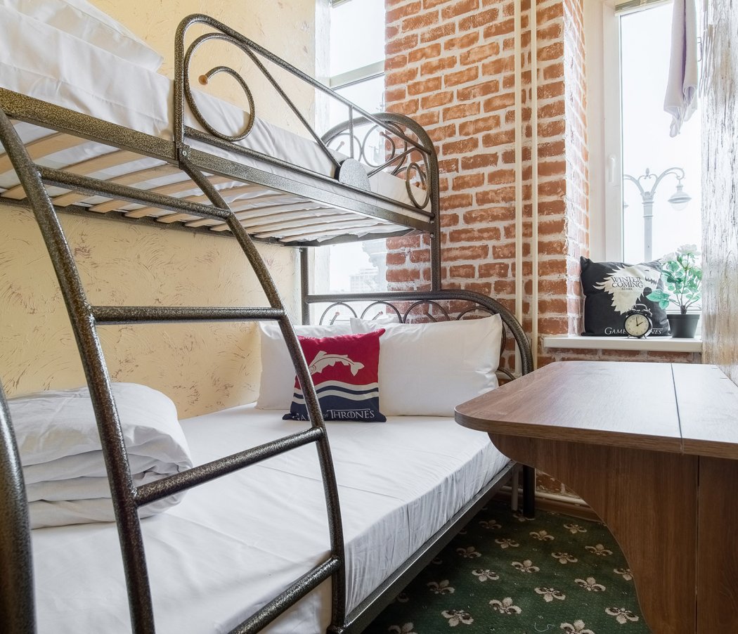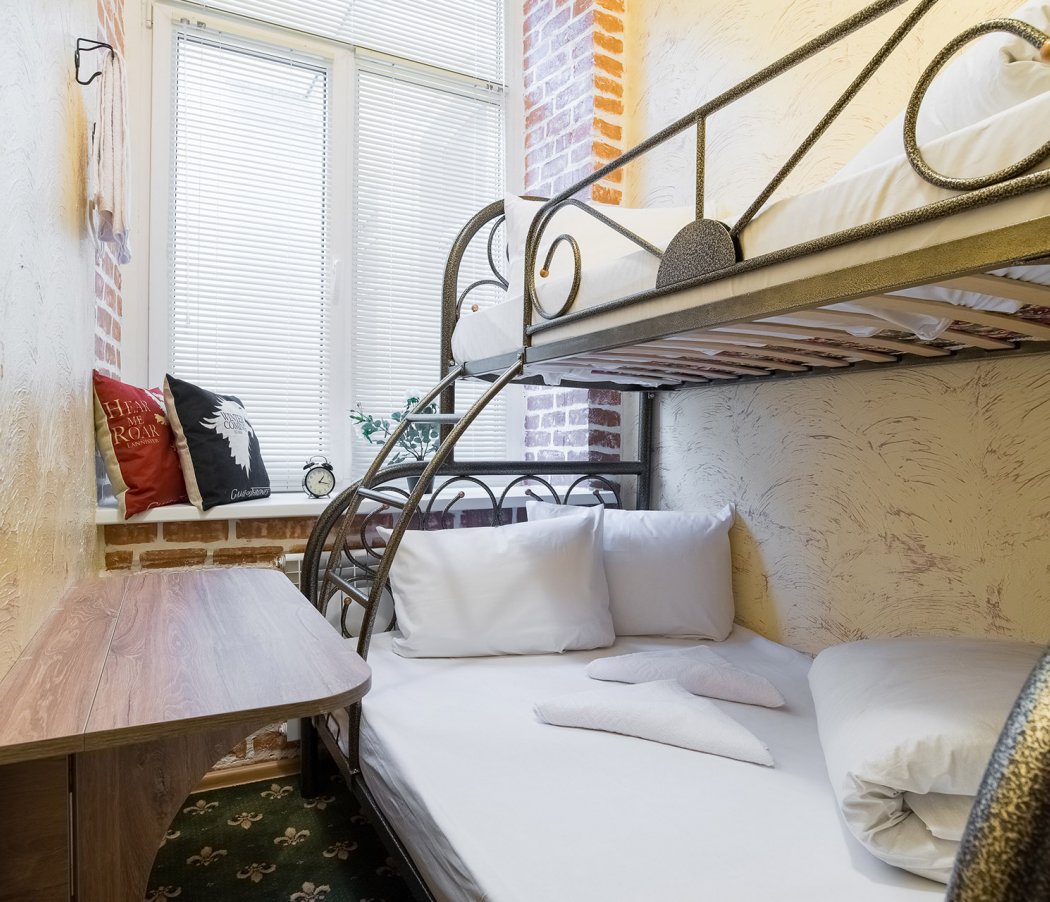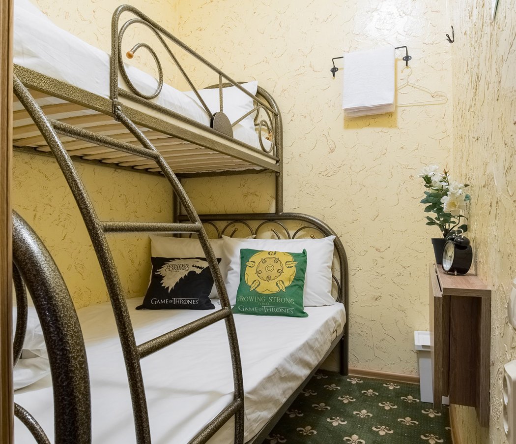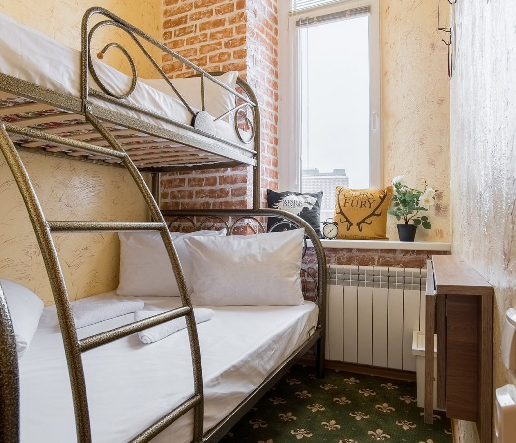 The hotel's interior is decorated in bright colors, with elements from the popular TV series "Game of Thrones" and loft style. Some rooms offer a view of the monument to Peter I and Prechistenskaya embankment.